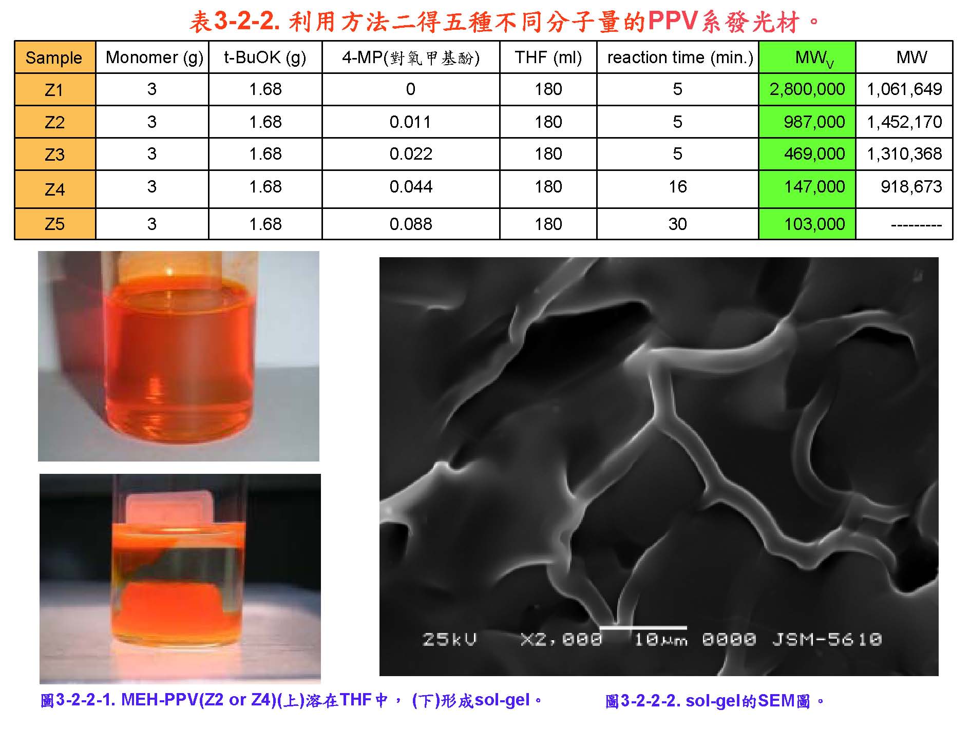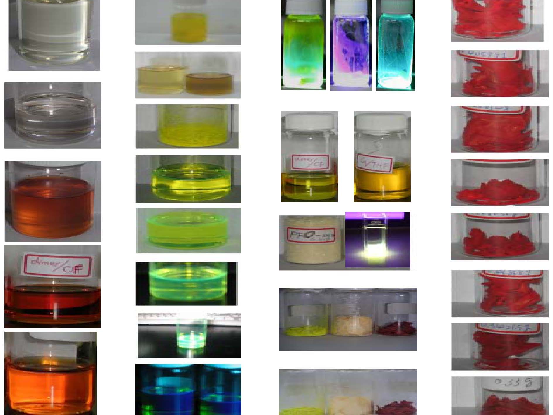 目前,本實驗室可以合成(OLED / PLED/ PHOLED)中多種電致發光半導體高分子 ,例 如 紅、橘 紅、黃、綠、藍色‥等等。分子量可以調控從數仟至數百萬,同時分子量分佈均勻(PDI < 1.5),也可將不同發光高分子各個鏈段聚合起來,例如紅光高分子與藍光高分子或再與綠光高分子形成多團鏈式共聚合物;由於高品質者合成困難,單價昂貴,從每 公克數萬元乃至拾萬元,發展潛力相當驚人,本實驗室也具備相當潛力,但資金缺乏,亟待產業界有興趣者共同參與,進行產學合作。 |